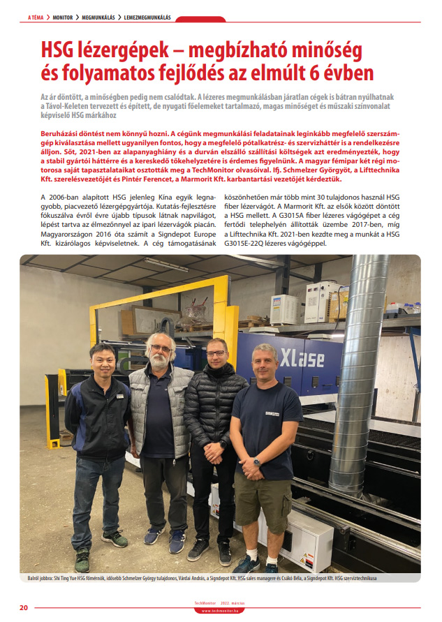 A Techmonitor 2022/03. számában bemutattuk új HSG lézervágó gépünket