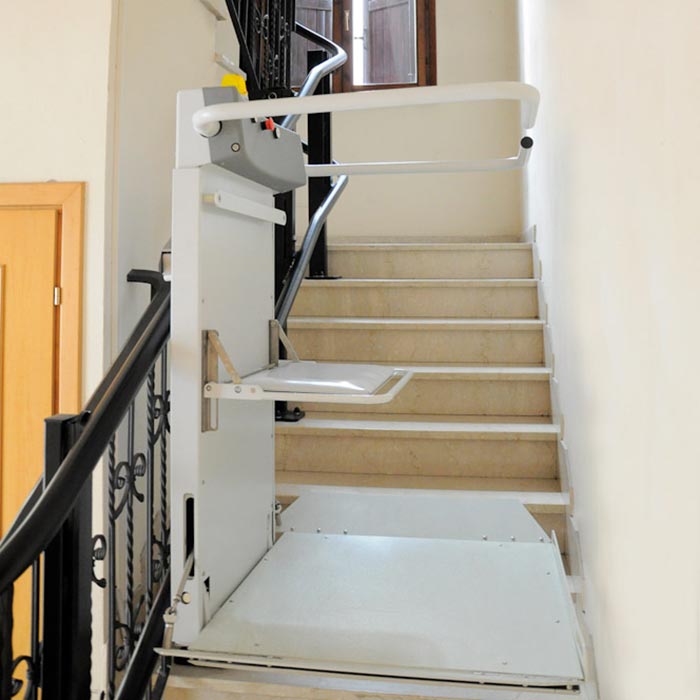 Az épületek akadálymentesítésének kedvelt eszköze a lépcsőlift. Ennek egyik típusa az egyenes lépcsőkarokon közlekedő lépcsőlift. A Lifttechnika Kft. által forgalmazott, telepített, karbantartott VIMEC V64 típusú lépcsőlift egyszerű műszaki kialakítása, megbízhatósága és kedvező árfekvése miatt az egyik legkedveltebb ilyen jellegű berendezés. A berendezés minden tekintetben megfelel az érvényben lévő MSZ EN 81-40 szabvány követelményeinek.
